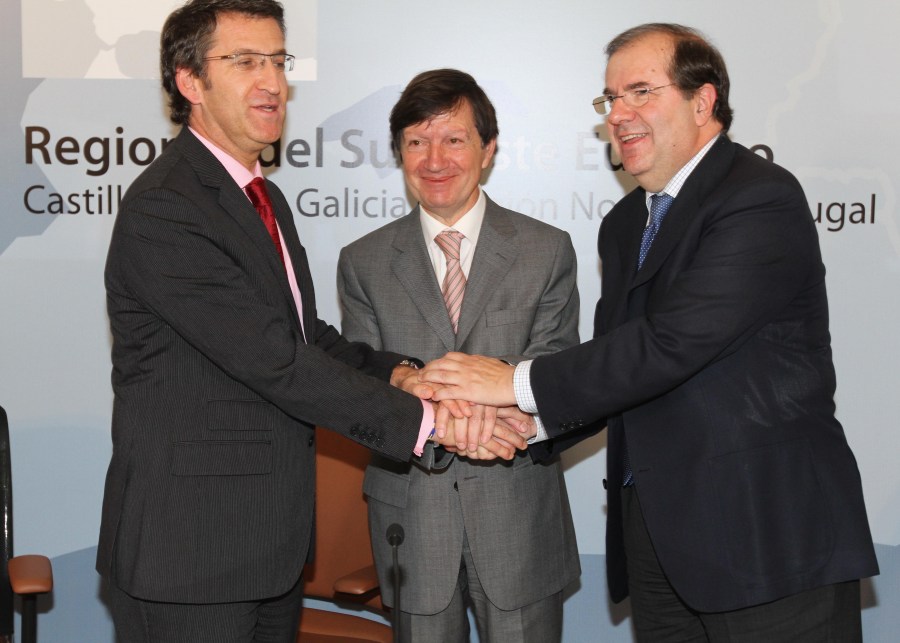 A continuación, Alberto Núñez Feijóo, Juan Vicente Herrera e Carlos Lage procederon á sinatura do protocolo de creación da macrorrexión Rexións do Sudoeste Europeo.