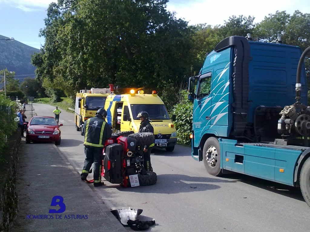 El Centro de Coordinación de Emergencias del 112-Asturias recibió el aviso a las 11.31 horas. En la llamada señalaban que, por causas que desconocían, un quad y un camión habían colisionado en la citada carretera y a consecuencia del impacto el quad estaba debajo del camión. Indicaban que había una persona herida y atrapada.