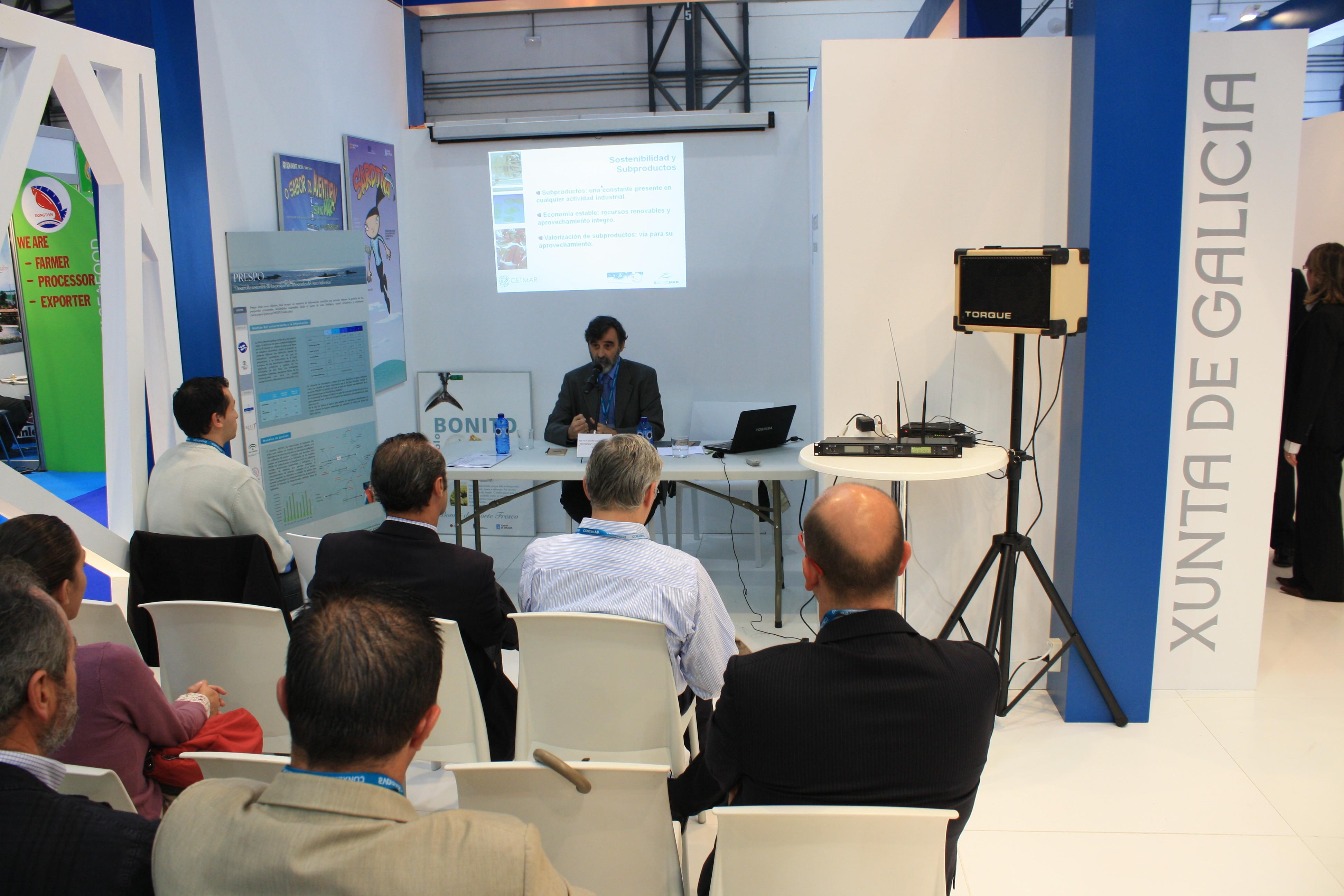 Nun acto celebrado no stand da Consellería do Mar, Julio Maroto Leal, coordinador da área de Tecnoloxía dos Produtos Pesqueiros da Fundación CETMAR, presentou a Bolsa de Subprodutos de Orixe Mariño, as súas características, así como as súas repercusións e beneficios. Entre as virtudes deste novo sistema citou o promocionar a reciclaxe e minimizar o impacto ambiental ou “proporcionar ás compañías un medio de reducir custos e mellorar a súa competitividade, reducindo os seus gastos na xestión dos residuos xerados polas súas actividades”.