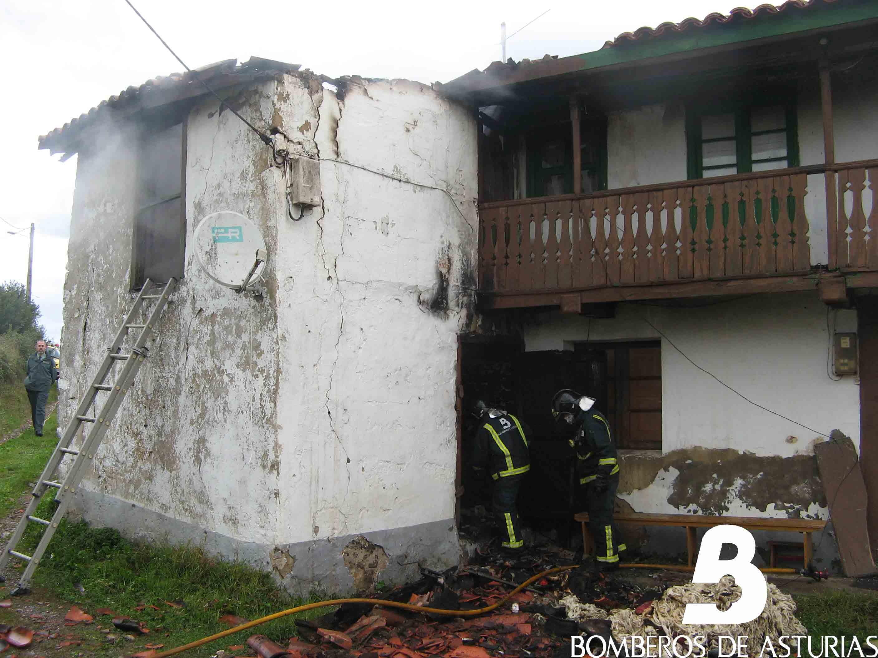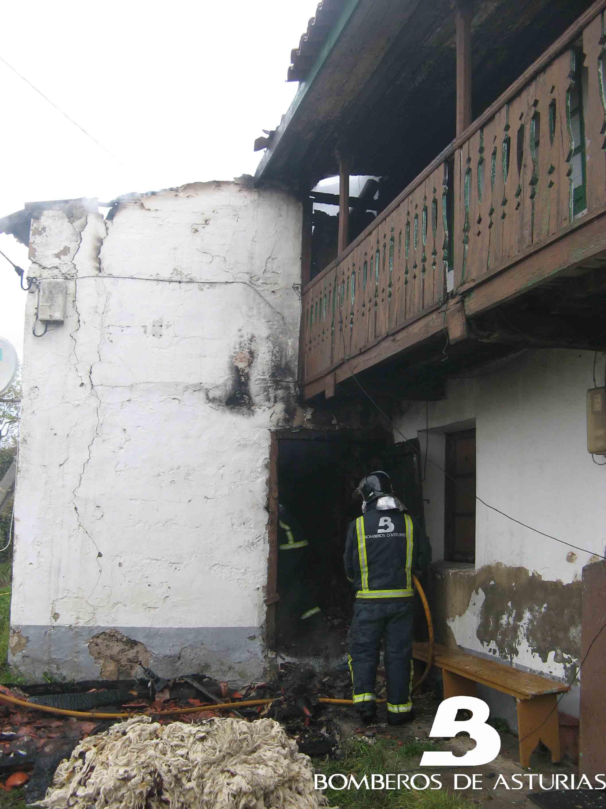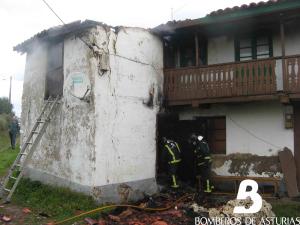 La dotación extinguió el fuego que afectó una parte del edificio, que se utilizaba como trastero. Las llamas afectaron la planta baja, el primer piso y la techumbre. Tras evitar que el incendio se propagase por todo el inmueble y alcanzase un hórreo cercano, los bomberos procedieron a enfriar la zona con agua, además de desescombrar y ventilar la parte incendiada. Los efectivos dieron por finalizada la intervención a las 10:37 horas.