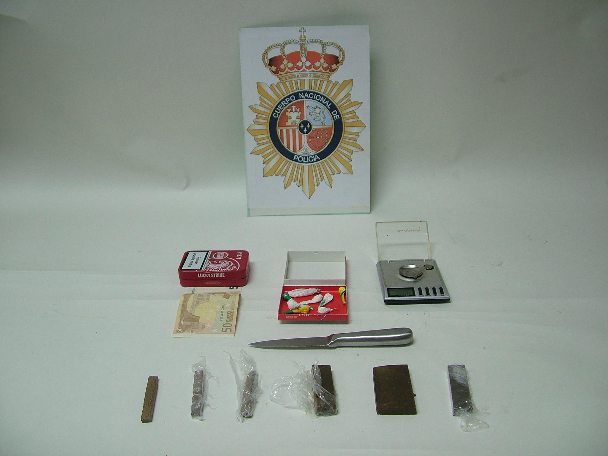 Como resultado de los registros efectuados a los detenidos, se interviene “COCAÍNA” para preparar SETENTA DOSIS y “HACHIS” con un peso de OCHENTA GRAMOS, así como una BÁSCULA DE PRECISIÓN y otros útiles para la manipulación y distribución de la droga, además de cierta cantidad de dinero que portaba el detenido.