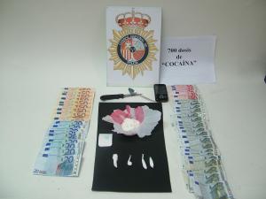 Una vez efectuada la detención se procedió al registro del bar siendo intervenida una cantidad de cocaína suficiente para preparar SETECIENTAS DOSIS, útiles para la manipulación y distribución de la droga y novecientos cincuenta euros.