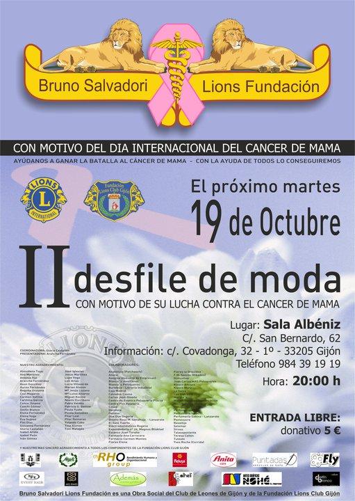 20/10/2010: El pasado martes 19 de octubre, Día Internacional contra el cáncer de mama, la Bruno Salvadori Lions Fundación organizó un desfile con el objetivo de recaudar fondos para la propia entidad, que desde hace tres años trabaja en beneficio de las personas que sufren esa enfermedad.