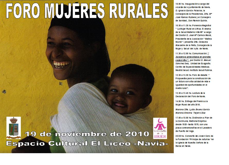 La Concejalía de la Mujer Rural del ayuntamiento de Navia, en el occidente asturiano, organiza el Foro de la Mujer Rural el próximo día 19 de noviembre de 2010. La hora del concierto del Joven Coro de la Fundación Principe de Asturias será a las 20:00h. en la Iglesia de Nuestra Señora de la Barca en Navia.