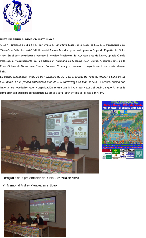 En El Liceo de Navia tuvo lugar la presentación del Ciclo-Cross Villa de Navia ‘VII Memorial Andrés Méndez’, puntuable para la Copa de España de Ciclocross.