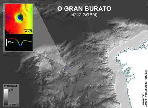O Gran Burato é o maior cráter submarino, producido por unha erupción de gas, dos atopados até o de agora no mundo. O cráter deste “Gran Burato” ten uns tres quilómetros de diámetro e está situado a unha profundidade de entre 2.500 e 2.800 metros