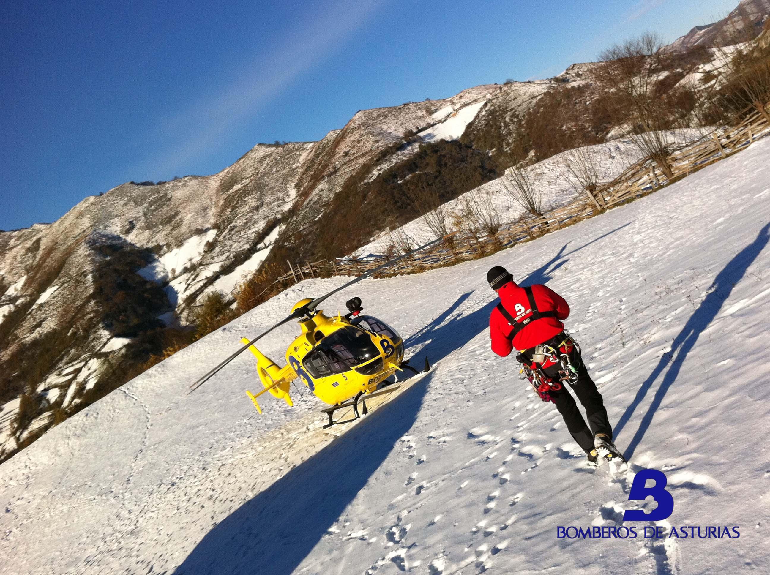 Al tratarse de una zona de difícil acceso para una ambulancia, se movilizó el Helicóptero Medicalizado de Bomberos de Asturias y al Grupo de Rescate del que forma parte un médico-rescatador.