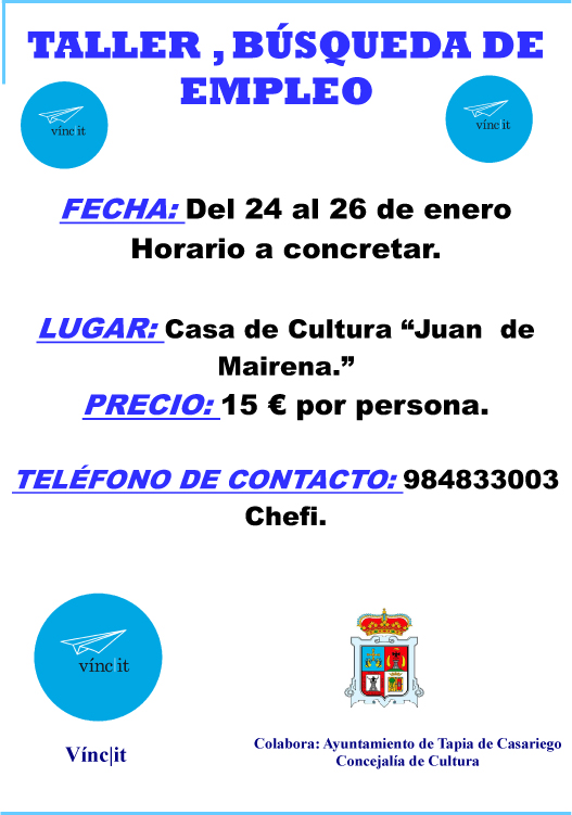 […] Extracto del anuncio : Tapia organiza un taller de búsqueda de empleo en enero … […]