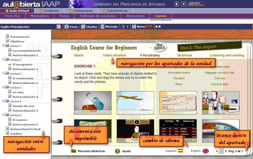 Se trata de un contenido formativo atractivo en el que el hilo conductor del curso es la historia de una familia española que recibe en su casa a una chica inglesa. Las situaciones comunicativas que se generan entre los personajes permiten adquirir un conocimiento básico mediante ejercicios prácticos.