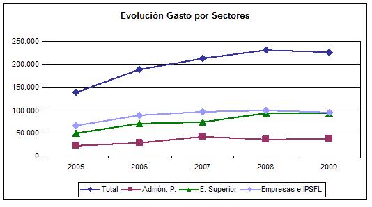 | Año | Total | Empresas | Administración pública | Enseñanza Superior |