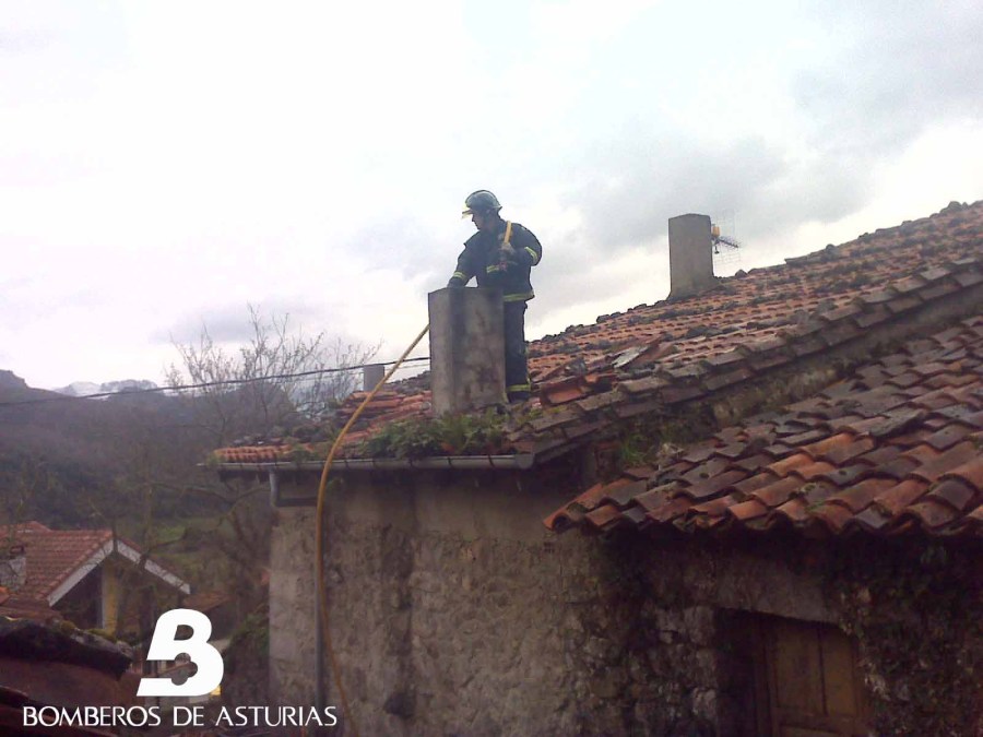Efectivos de Bomberos de Asturias, con base en Cangas de Onís, sofocaron un incendio declarado en una vivienda de la localidad de Asiego, en Cabrales. El fuego, que no afectó a ninguna persona, dañó parte de la cubierta de la casa.
