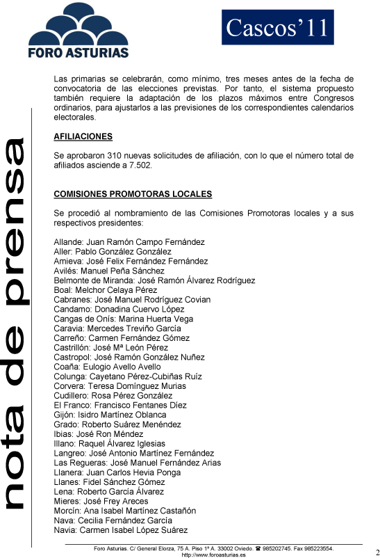 Además, el presidente de Foro Asturias y candidato a la Presidencia del Principado, Francisco Álvarez-Cascos, considera que no va a necesitar al PP para hacerse con la Presidencia de Asturias y ha dicho que su partido no aceptará ni “pactos de trastienda ni acuerdos de restaurante” para poder gobernar.