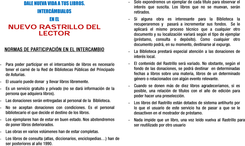 Nuevo rastrillo del lector en la biblioteca de Navia