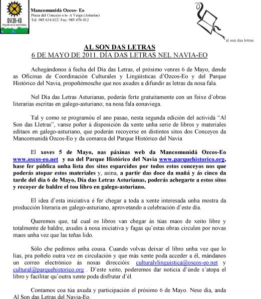6 de mayo, Día das Letras en el Navia-Eo