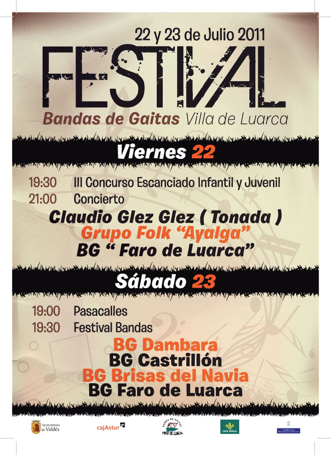 Cartel del IV FESTIVAL DE BANDAS DE GAITAS «VILLA DE LUARCA» así como las bases del III CONCURSO DE ESCANCIADO INFANTIL Y JUVENIL.