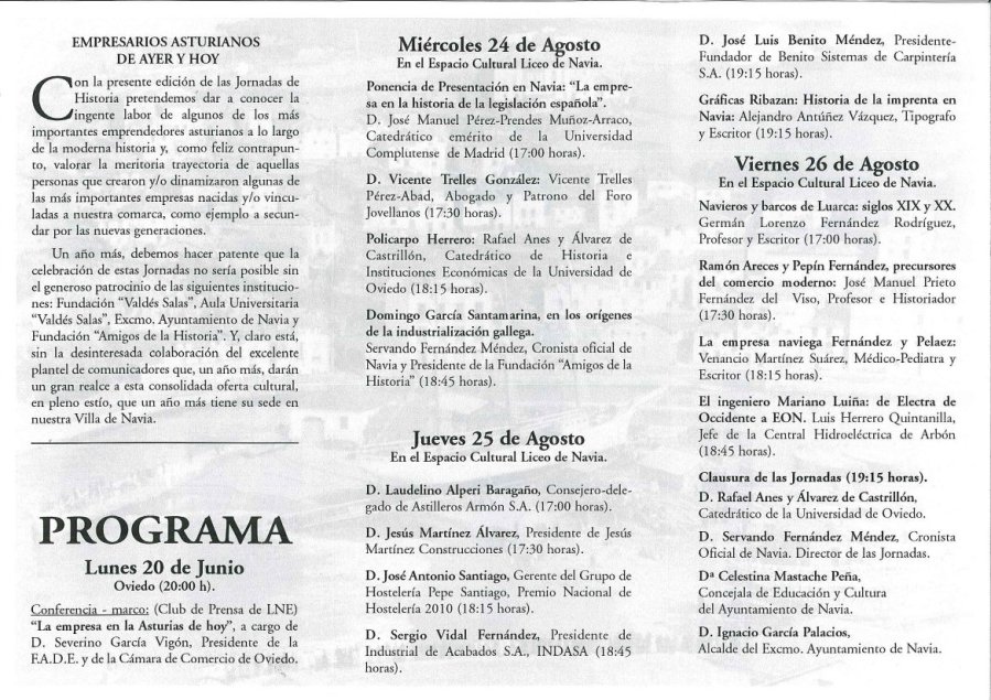 Las VIII Jornadas de la Historia los días 24, 25 y 26 de Agosto se celebrarán en el Liceo de Navia , el tema será «Empresarios de ayer y hoy».