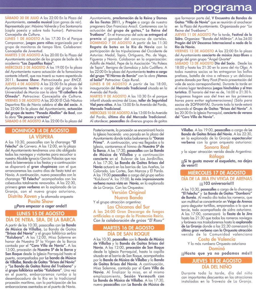 Programa de actos previsto para las Fiestas de Nuestra Señora de la Barca y San Roque, de Navia, que se celebrarán los días 14, 15, 16 y 17 de Agosto. El calendario festivo, con diferentes actos como obras de teatro, espectáculos infantiles, mercado medieval, etc, dará comienzo este Sábado día 30 de Julio.