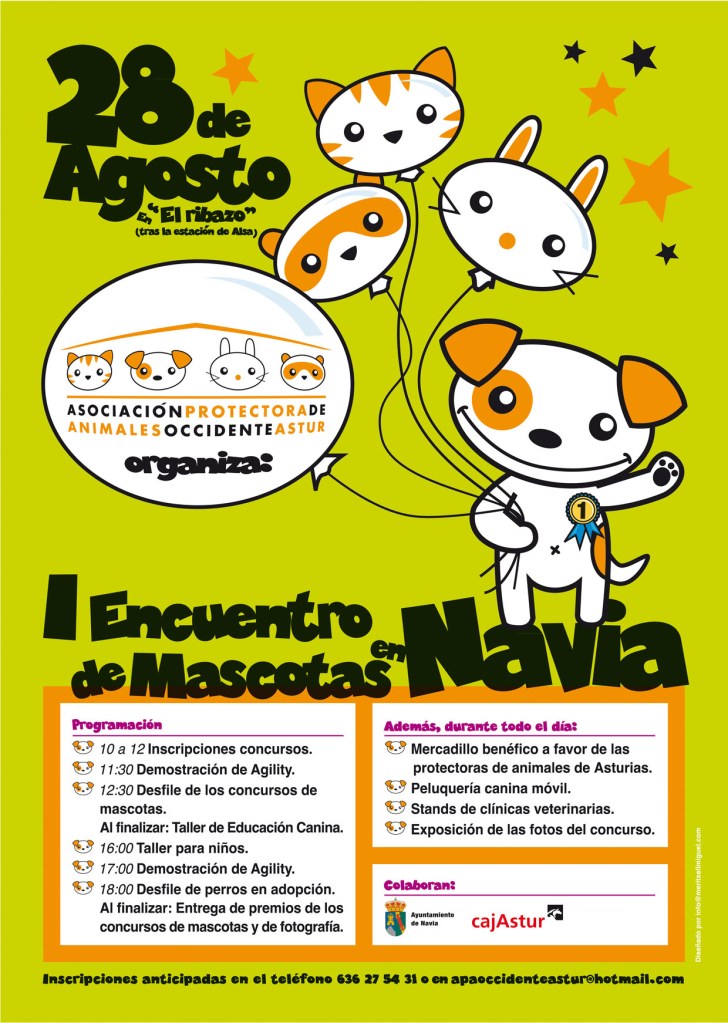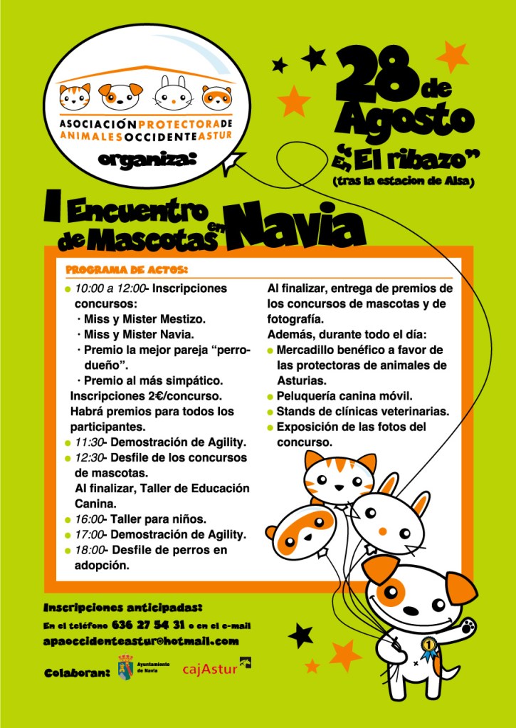 El próximo día 28 de agosto tendrá lugar en El Ribazo, Navia (tras la nueva estación de autobuses) el PRIMER ENCUENTRO DE MASCOTAS EN NAVIA