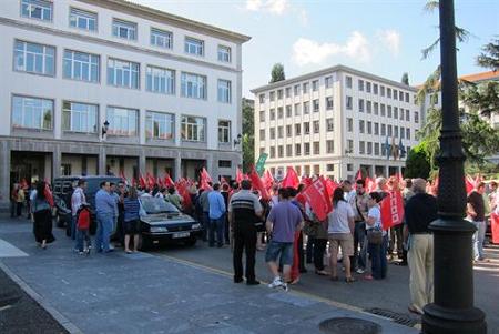 Los sindicatos mayoritarios, acompañados de USO, y otras organizaciones sociales como la Unión de Consumidores o la Coordinadora de ONG’s entre otras, se han concentrado en la mañana del lunes 5 de septiembre en el centro de Oviedo para mostrar su oposición a la reforma constitucional pactada entre PSOE y PP.
