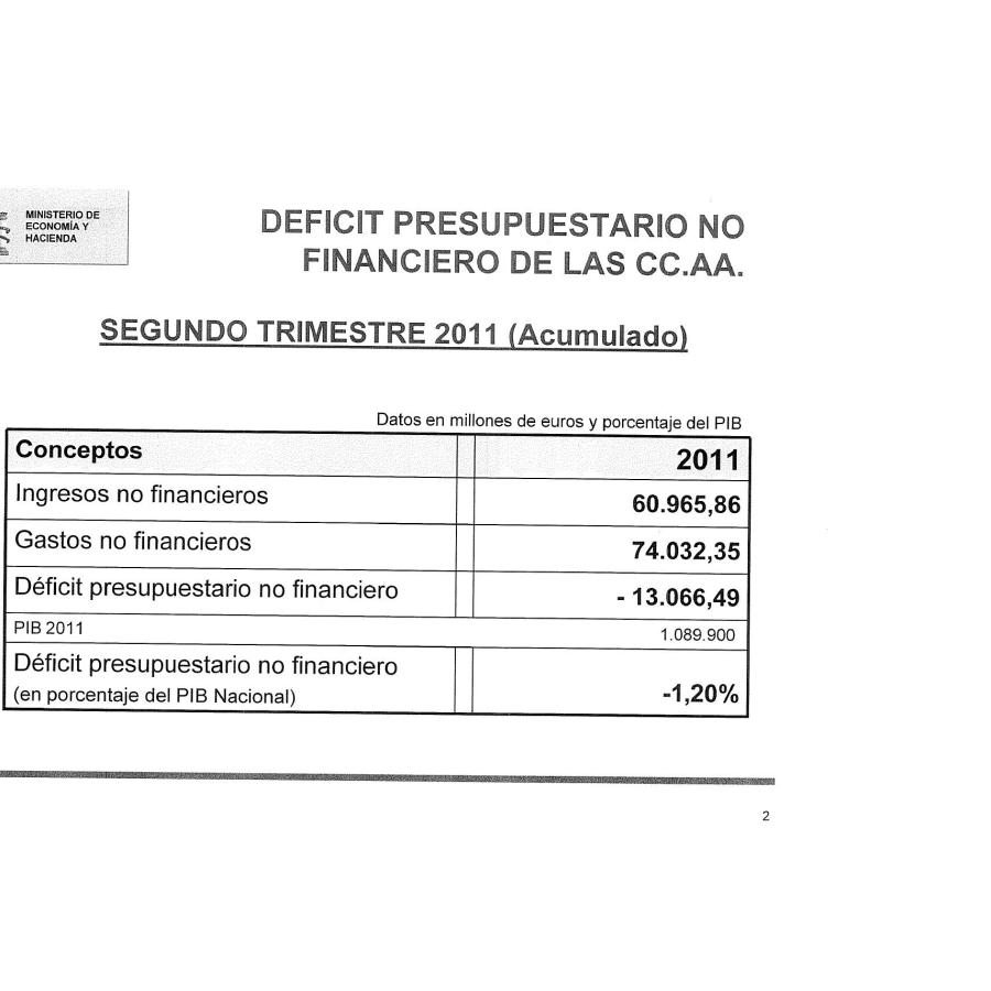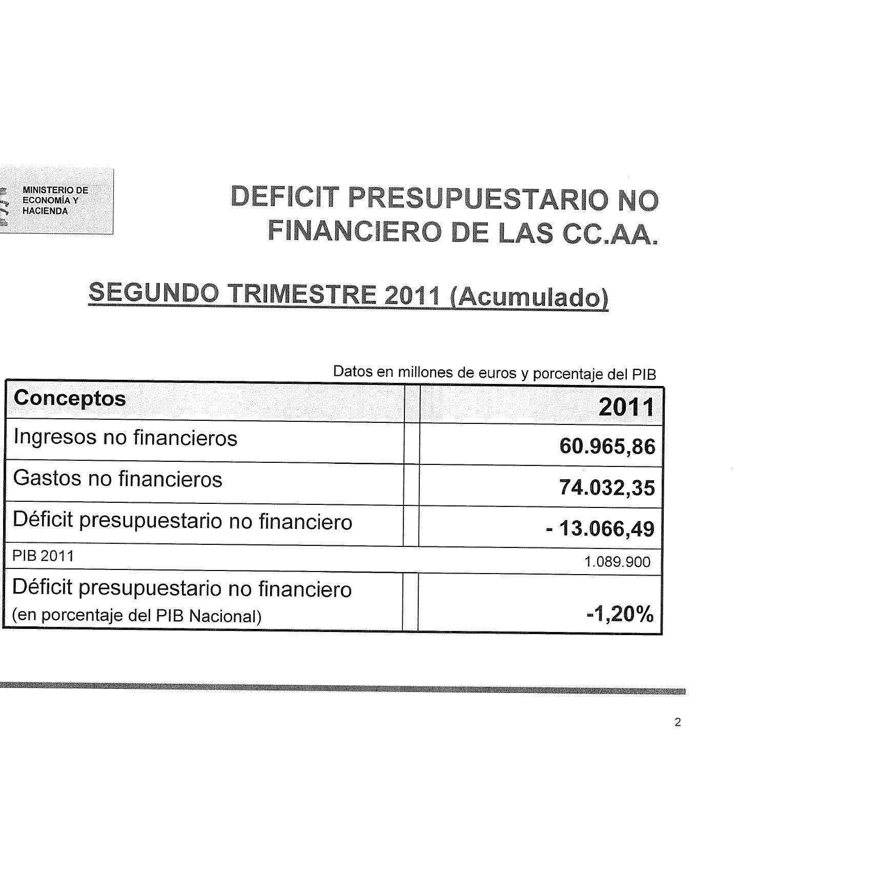 Documento 1: ‘Ejecución presupuestaria de las comunidades autónomas. Datos a 30 de junio de 2011’. Ministerio de Economía y Hacienda.