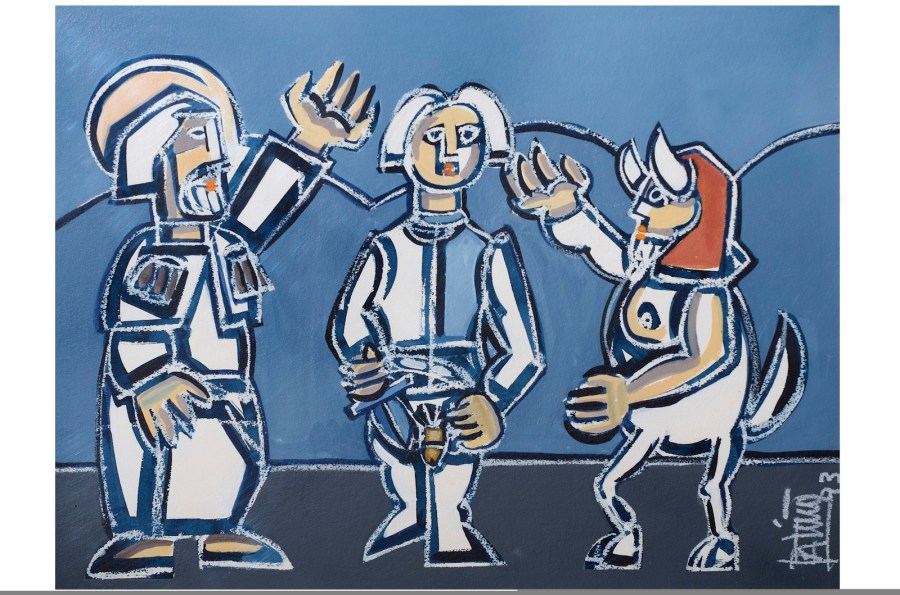 En este contexto se presenta la serie Los milagros del Apóstol, el expresionismo se convierte en el alegato plástico para la representación de una iconografía que reverbera el mundo de la mentalidad religiosa medieval del que forman parte también los relatos jacobeos extraídos del Códice Calixtino.