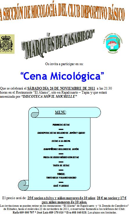 Cartel da Cena Baile de Micoloxía que ten previsto celebrar el sábado 26 de novembre de 2011.