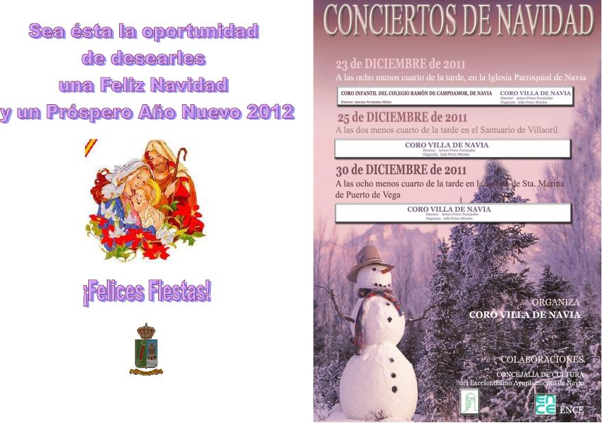 Desde la Concejalía de Cultura del Ayuntamiento de Navia se organizan conciertos de Navidad a cargo del Coro Villa de Navia los días :