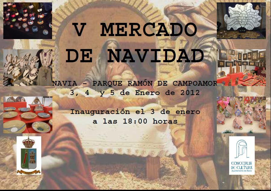 Los días 3, 4 y 5 de enero de 2012 se celebrará el V Mercado de Navidad en el Parque Ramón de Campoamor en Navia. El día 5 de enero a las 12:00h en el propio Mercado de Navidad, tendrá lugar la entrega de los Premios a los galardonados en el Concurso de Postales de Navidad al que participaron los niños y niñas de los colegios del concejo y cuyo concurso lo organiza la Concejalía de Cultura del Ayuntamiento de Navia.