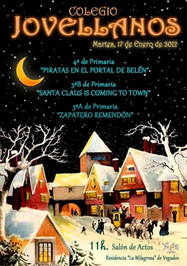 El martes 17 de enero a las 11h. en el Salón de Actos de la Residencia La Milagrosa de Vegadeo ha tenido lugar la representación teatral de dos obras por los alumnos de 3º y 4º de Primaria del Colegio Jovellanos de Vegadeo, así como un baile al son de ‘Santa Claus is coming to town’.