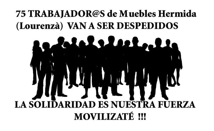 MANIFESTACIÓN DE APOYO A LOS 75 TRABAJADORXS DE MUEBLES HERMIDA DESPEDIDOS. SERÁ EN LOURENZÁ EL DOMINGO, 5 DE FEBRERO A LAS 12´30.