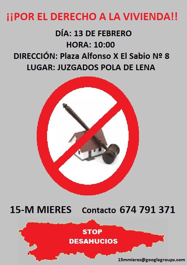 Manifestación de los Indignados el 13 de febrero de 2012 en Mieres contra los desahucios
