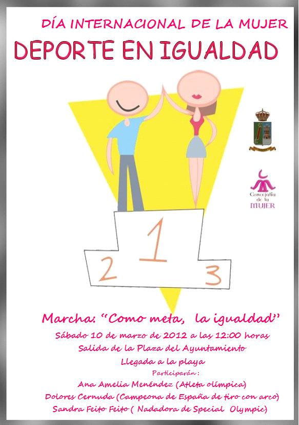 La Concejalía de la Mujer del Ayuntamiento de Navia, con motivo del Día Internacional de la Mujer 2012 tiene previsto la realización de una marcha, «Como meta, la igualdad» el sábado 10 de marzo de 2012 a las 12:00h. con salida en la Plaza del Ayuntamiento.