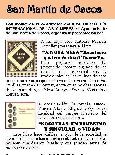 San Martín de Oscos presenta esta semana el recetario gastronómico de Oscos-Eo y el libro sobre las mujeres destacadas del occidente asturiano