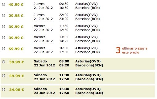 Durante el més de junio la compañía operará tres frecuencias al día por sentido entre Asturias y Barcelona que serán 4 los lunes y viernes.