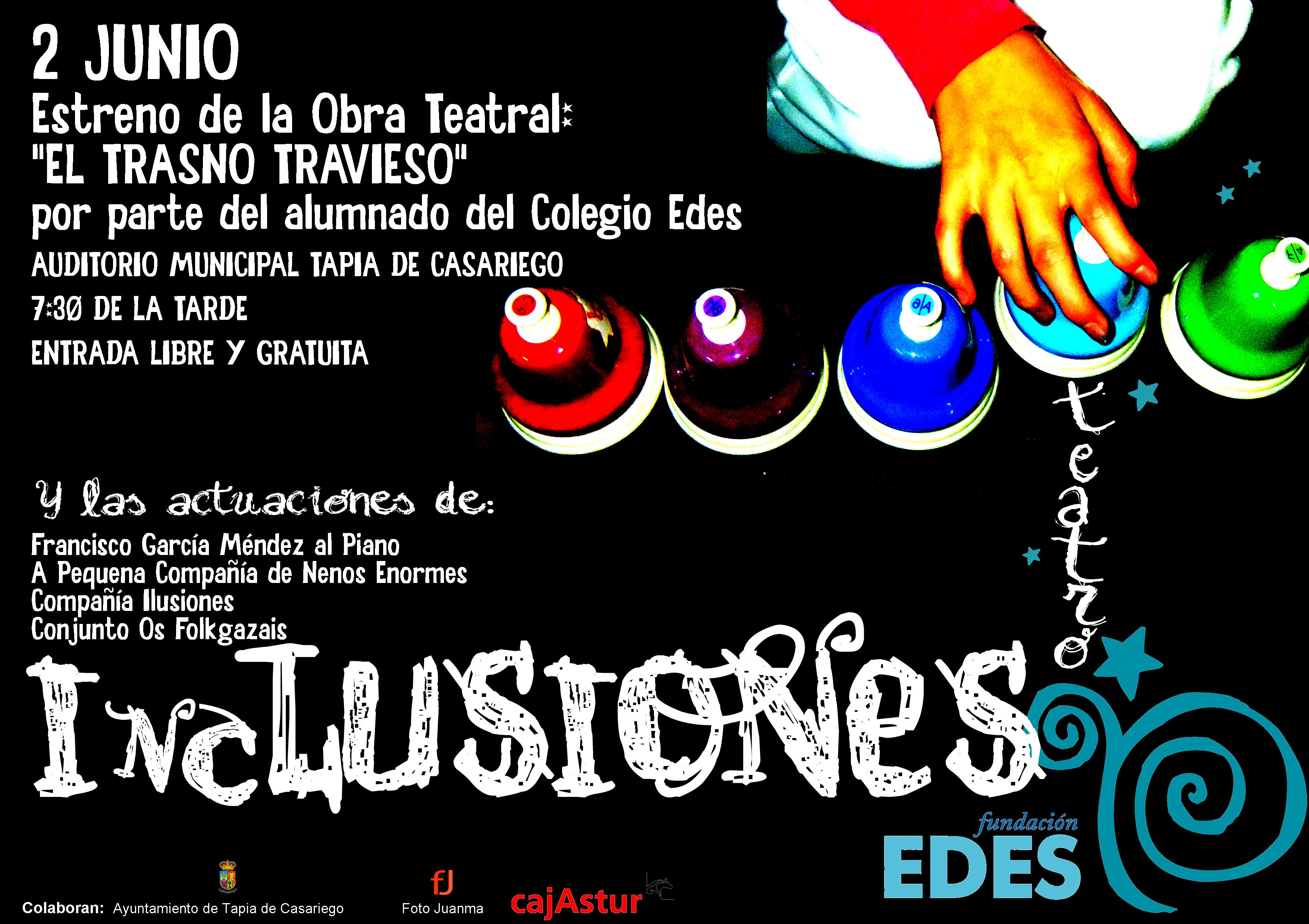 El próximo sábado 2 de junio el grupo de teatro formado por alumnado del colegio Edes estrena la obra “El trasno travieso” a las 7:30 de la tarde en el Auditorio Municipal de Tapia de Casariego.