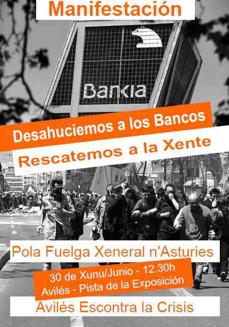 Actualmente, forman parte de “Avilés contra la crisis”: Compromisu por Avilés, CSI, CGT, Izquierda Anticapitalista, PCA, UJCE y Más Corvera. CONVOCATORIES D’AVILÉS ESCONTRA LA CRIS “DESAHUCIEMOS A LOS BANCOS, RESCATEMOS A LA XENTE”. “POLA FUELGA XENERAL N’ASTURIES”.