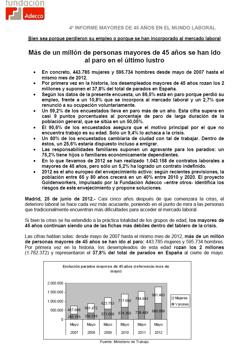 La Fundación Adecco presenta el IV Informe Mayores de 45 años en el Mundo Laboral