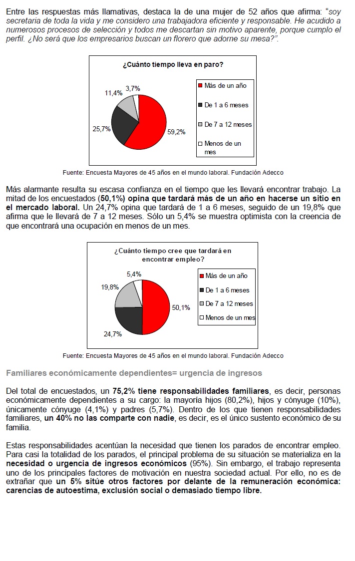 - Un 59,2% de los encuestados lleva en paro más de un año. Esta cifra supera en casi 9 puntos porcentuales al porcentaje de paro de larga duración de la población general, que se sitúa en un 50,05%.