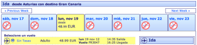 salida Gran Canaria: 10:15 — llegada Asturias 14:10 salida Asturias 14:35 — llegada Gran Canaria 16:25