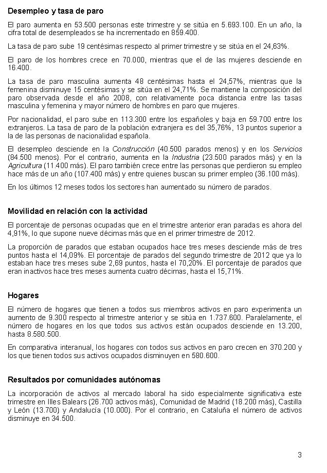 PARO JUVENIL: 53% La tasa de paro juvenil (menores de 25 años) llegó al 53,28% en el segundo trimestre, 1,27 puntos porcentuales más que en el primer trimestre y 7,16 puntos más que en el mismo periodo de 2011.