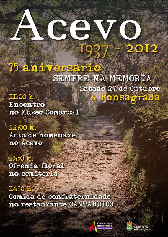 Se celebrará el acto en el Acevo con una placa en homenaje a los asesinados en el alto en Octubre del 37. Se realizará asimismo un «milladorio» conmemorativo en el que vecinos, visitantes y familiares aportaran piedras de diferentes lugares y con diferente simbolismo.