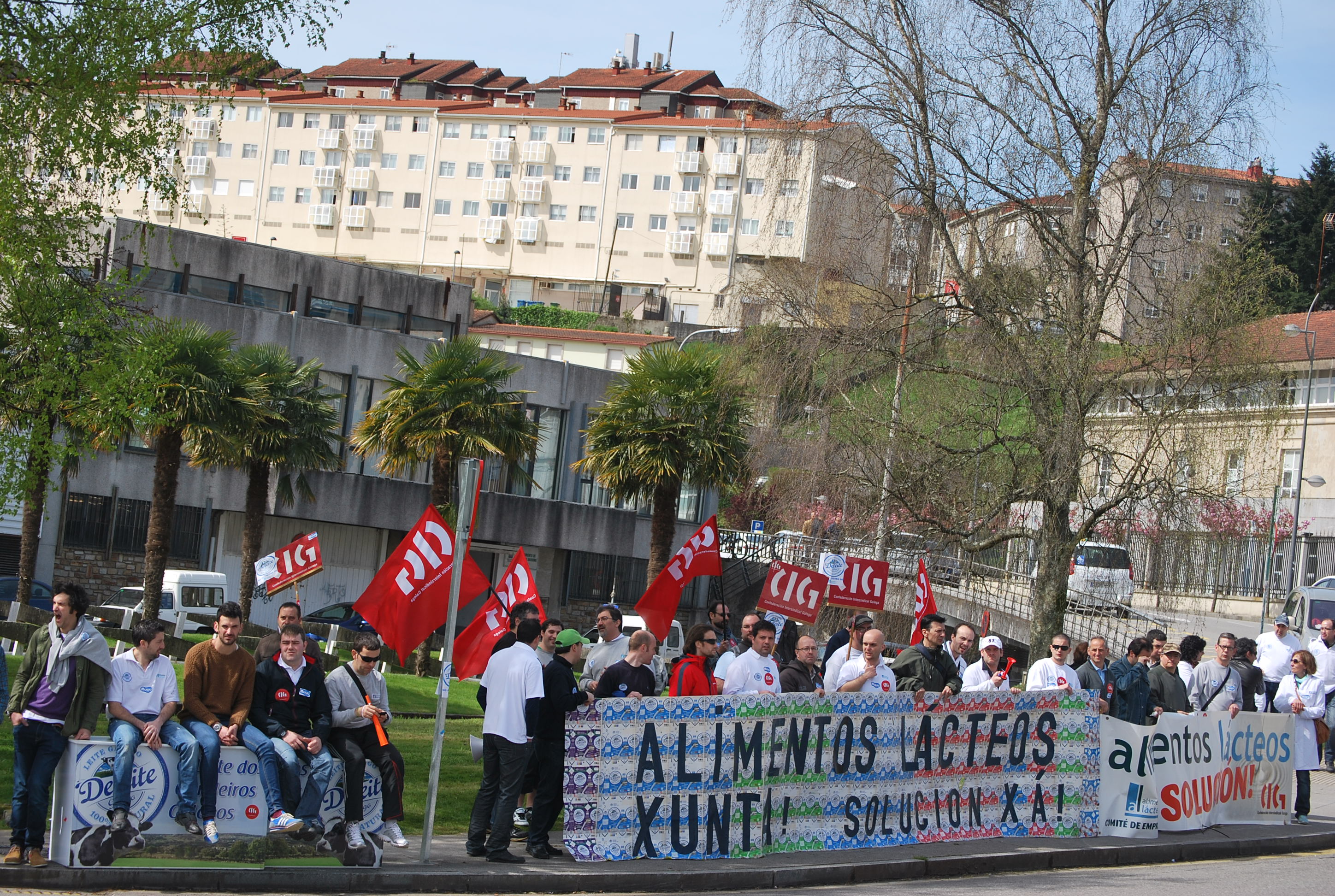 Traballadoras e traballadores de Alimentos Lácteos concentrábanse esta mañá ás portas de San Caetano, diante da consellaría de Industria, para exixir da Xunta de Galiza unha resposta inmediata que permita continuar coa actividade e que se manteñan os postos de traballo. Crhistian López Carmona, secretario comarcal da FGAMT-CIG de Lugo, denuncia que o silencio da administración está a abocar á empresa a unha situación límite.