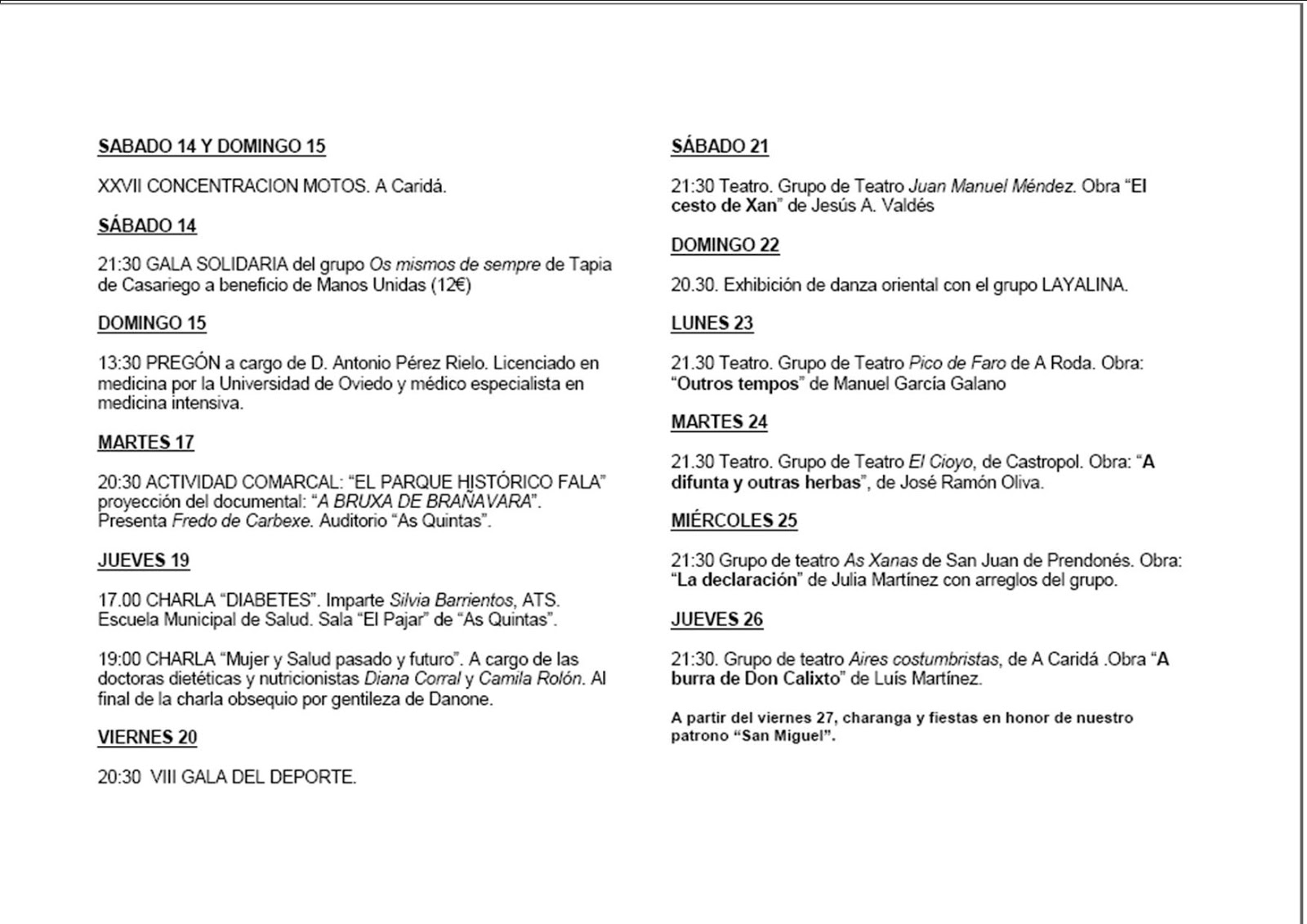 XXX SEMANA CULTURAL DE SAN MIGUEL 2013 – A CARIDÁ.