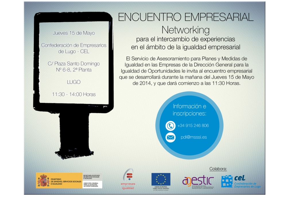 En este encuentro se presentará el Servicio de Asesoramiento para Planes y Medidas de Igualdad en las Empresas de esta Dirección General, y se podrán conocer las experiencias concretas de dos empresas en materia de igualdad, SADA PA Castilla – Galicia y GADISA.
