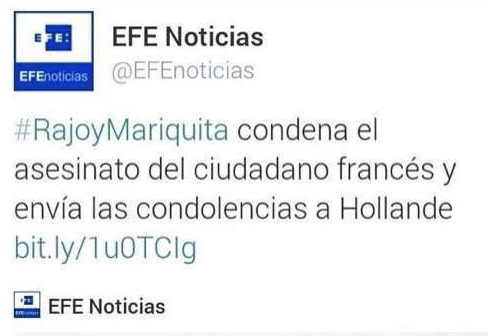 Hace unos días en Partido Popular de Masnou fue la comidilla de las redes con su mala gestión de la crisis social media que hizo a raíz de su tuit contra Artur Mas, y hoy la Agencia EFE de noticias ha tenido un gran impacto no buscado al publicar una noticia con el hashtag #RajoyMariquita, que ha dado la vuelta al mundo por Twitter y ha salido en casi toda la prensa nacional.