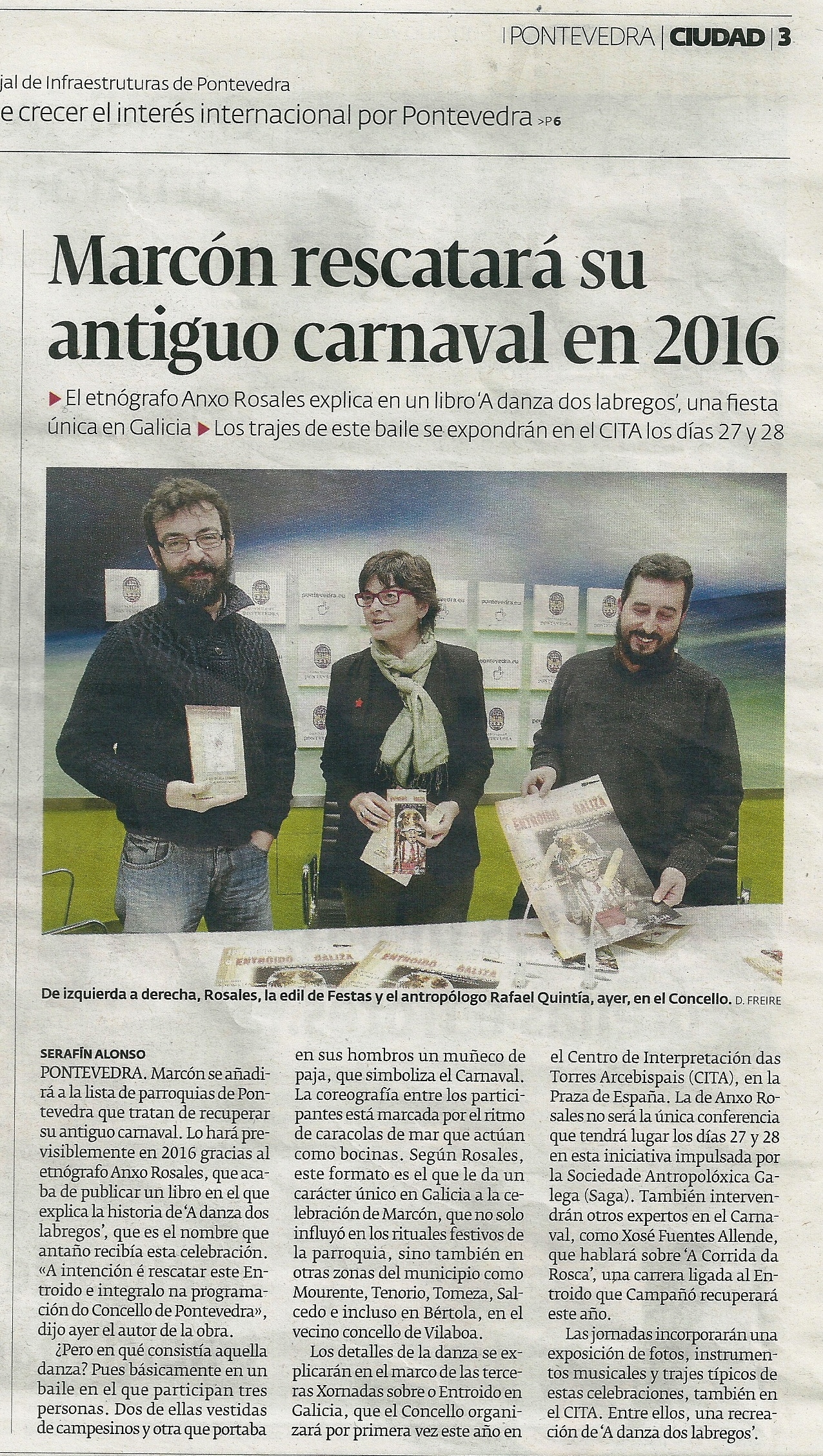 Este ano e grazas á colaboración da Concellería de Patrimonio, as xornadas (conferencias e exposición) terán lugar no Centro de Interpretación das Torres Arcebispais (CITA). Coido que é unha grande oportunidade para aqueles que queiran saber máis sobre a festa tradicional , na miña opinión, máis importante e de maior fondura cultural do ano. Por outra banda, nesta edición contaremos cunha magnífica exposición na que poucas veces se terán visto tantos traxes e elementos do entroido xuntos, así que este é outro motivo para non perderse este encontro anual coa nosa cultura galega.