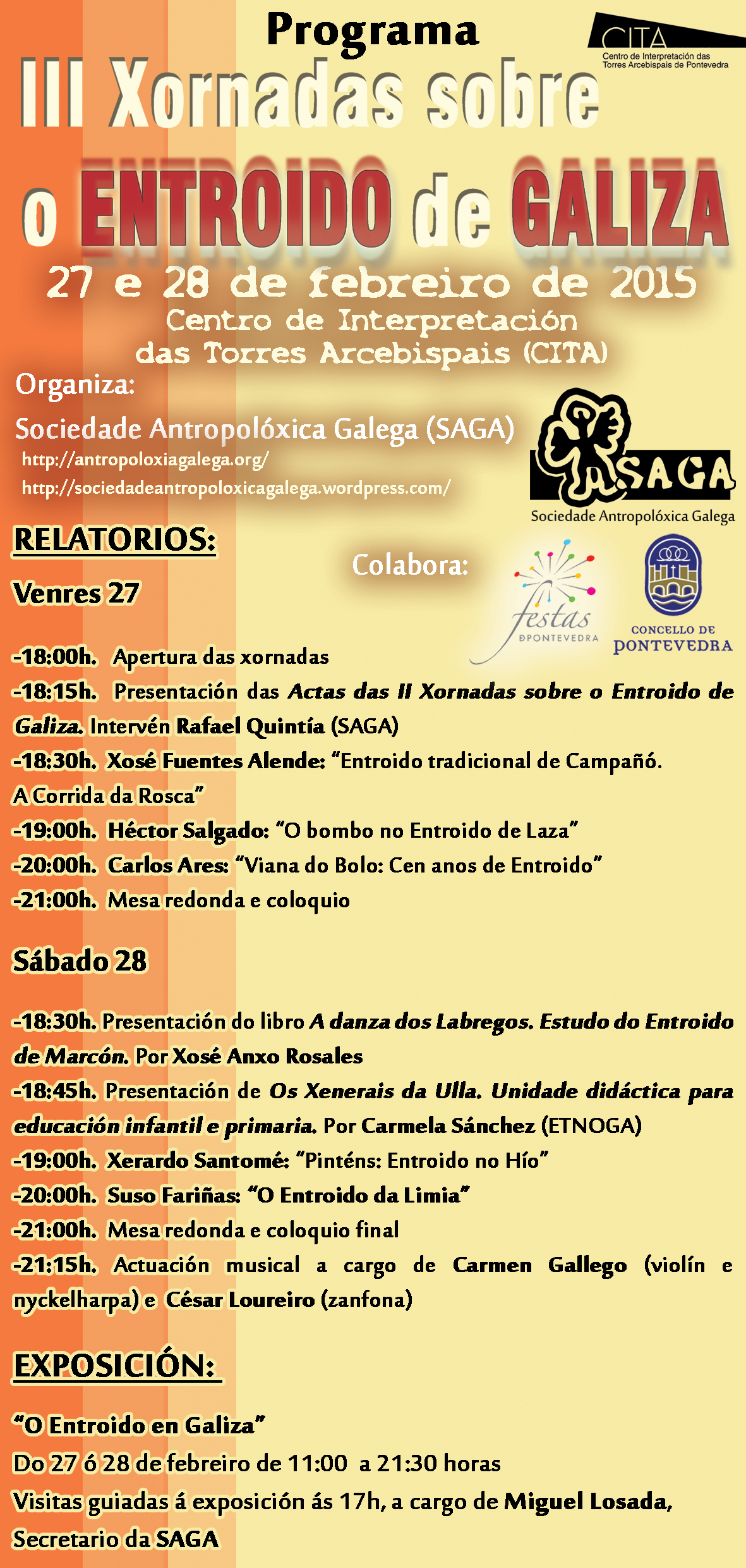 Un ano máis xa están aquí as «III Xornadas sobre o Entroido de Galiza» que organiza a Sociedade Antropolóxica Galega coa colaboración do concello de Pontevedra (Concellería de Festas).