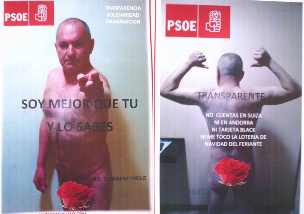 Está claro que sus políticos, porque si no no se explica este atentado contra el buen gusto perpetrado por Luis Alberto Nicolás Pérez, candidato socialista de la localidad cántabra de Meruelo que se promociona para las municipales de esta guisa. Y no, no es un fake.