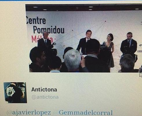 El mensaje iba acompañado de una fotografía de la inauguración del espacio museístico en la que aparece el presidente del Gobierno junto al alcalde, la ministra de Cultura francesa, Fleur Pellerin, y el entonces presidente del Centro Georges Pompidou…