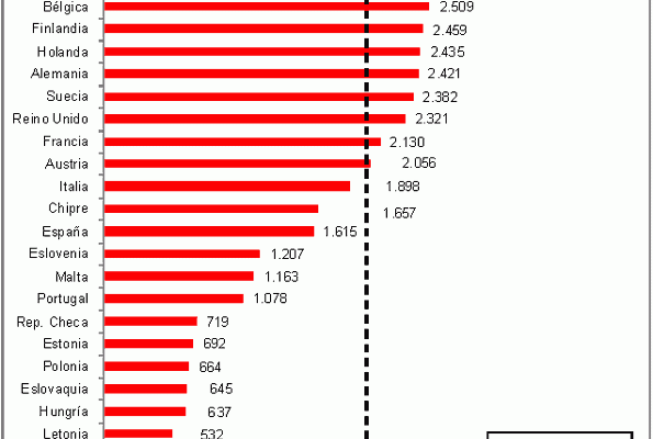 Centrándonos en España, su situación relativa es de clara ventaja en comparación con los países del Este de Europa, pero resulta desfavorable respecto de los países más avanzados de la UE.